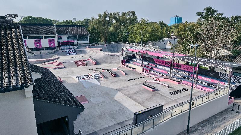 重云巷的潮流性,不僅體現在文創產品,還體現在新潮運動的體驗。TURNPROHOUSE滑板公園的入駐,讓滑板這一潮流極限運動融入了陽澄湖半島“體育+文旅”的發展浪潮中。TURNPROHOUSE由一個專業滑板場、一家環球三明治集合店、一間潮流服飾買手店共同組成。其中,TURNPRO滑板場占地約1500㎡,由經典的“街式場地”與“碗池場地”組成,可兼顧教學培訓與專業賽事,是蘇州最大的專業滑板圣地。