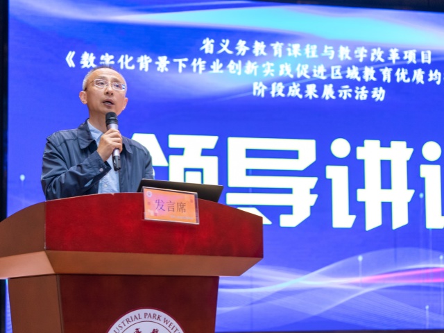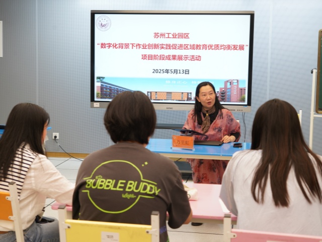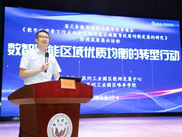 為進一步推進江蘇省義務(wù)教育課程與教學(xué)改革項目《數(shù)字化背景下作業(yè)創(chuàng)新實踐促進區(qū)域教育優(yōu)質(zhì)均衡發(fā)展的研究》的實踐與探索,凝練園區(qū)數(shù)字化賦能教育教學(xué)改革的新經(jīng)驗,促進區(qū)域教育優(yōu)質(zhì)均衡發(fā)展。5月13日下午,“數(shù)字化背景下作業(yè)創(chuàng)新實踐促進區(qū)域教育優(yōu)質(zhì)均衡發(fā)展”項目階段成果展示活動在蘇州工業(yè)園區(qū)唯亭學(xué)校順利開展。園區(qū)教師發(fā)展中心主任葉鵬松,副主任許鳳、胡修喜、戴小駒等相關(guān)領(lǐng)導(dǎo)出席了本次活動,同時還有部分學(xué)科教研員以及來自全區(qū)義務(wù)教育階段學(xué)校的教學(xué)分管校長、教導(dǎo)主任、學(xué)科骨干教師等參與學(xué)習(xí)和交流。活動通過課堂教學(xué)展示、項目校經(jīng)驗分享、項目組工作匯報等多種形式,全方位呈現(xiàn)數(shù)字化背景下作業(yè)創(chuàng)新實踐的階段性碩果,為構(gòu)建更具活力的教育生態(tài)注入強勁動能。
