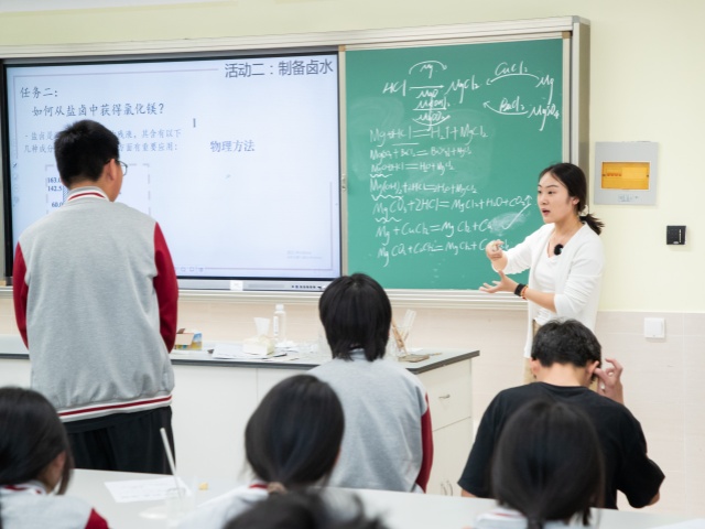 星灣學(xué)校化學(xué)骨干教師邰偉偉對牟老師的課程進行高度評價。牟老師以“鹵水點漿 凝結(jié)成花”為題,利用易加平臺數(shù)字化賦能課堂,引導(dǎo)學(xué)生鑒別鹵水和實驗室制備鹵水,師生共同探討工業(yè)富集鹵水原料氯化鎂,最后學(xué)生動手制作豆花,深刻感受古法制豆花的魅力,感受新型創(chuàng)新作業(yè)形式。