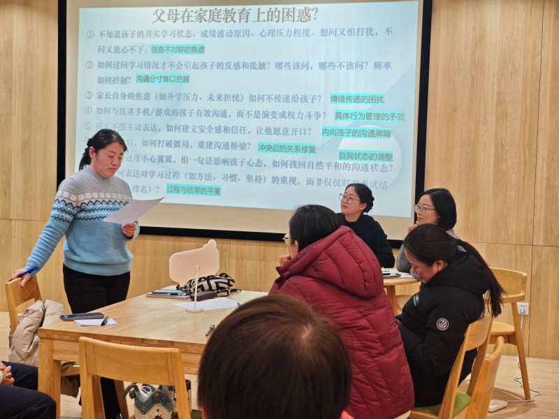 現場氛圍溫馨而熱烈,老師與家長一起結合日常案例,分析高三親子溝通的常見困擾,在互動研討環節,家長們以小組為單位,圍繞“如何應對孩子的叛逆情緒”“考前如何與孩子溝通”等話題展開熱烈討論,共同探尋親子溝通的金鑰匙: